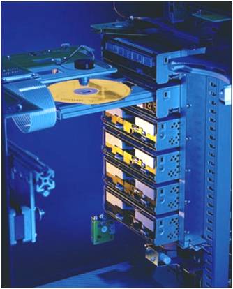 Product highlights: Extremely robust Heavy duty proof Long-time proven for mission-critical application Simple and functional construction Aluminum Chassis Cost effective Magazine system Ergonomic design 35-Slot, fist-sized, lockable, interchangeable Suitable for off-line media management Double RFID tags for offline/nearline indexing Mailslot Single media exchange Standard drives used State-of-the-art DVD/BD drives No modification on drives Direct SATA interface ready (no bridges needed) Easy and inexpensive upgrade No maintenance problem during the product lifetime Integrated media printer HP Inkjet technology High quality Low cost On-demand media labeling Self-learning Automatic magazine adaptation Auto calibration of the robotics Interchangeability of nearline and offline magazines Mechanical construction